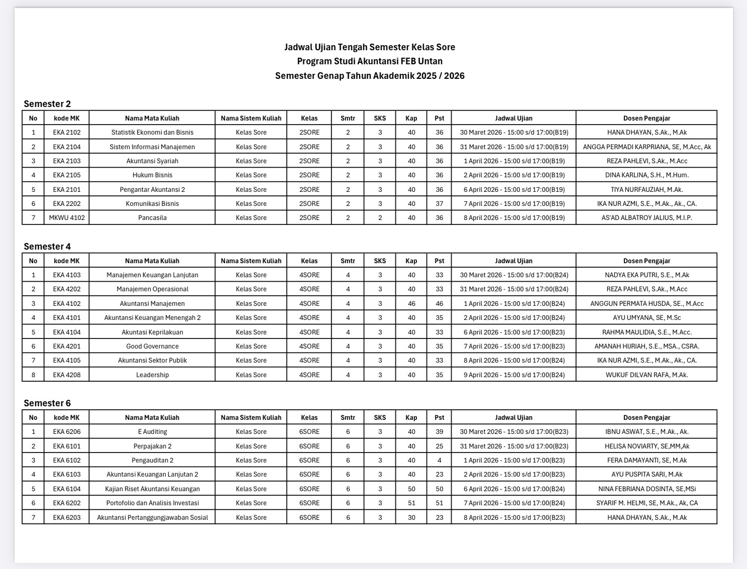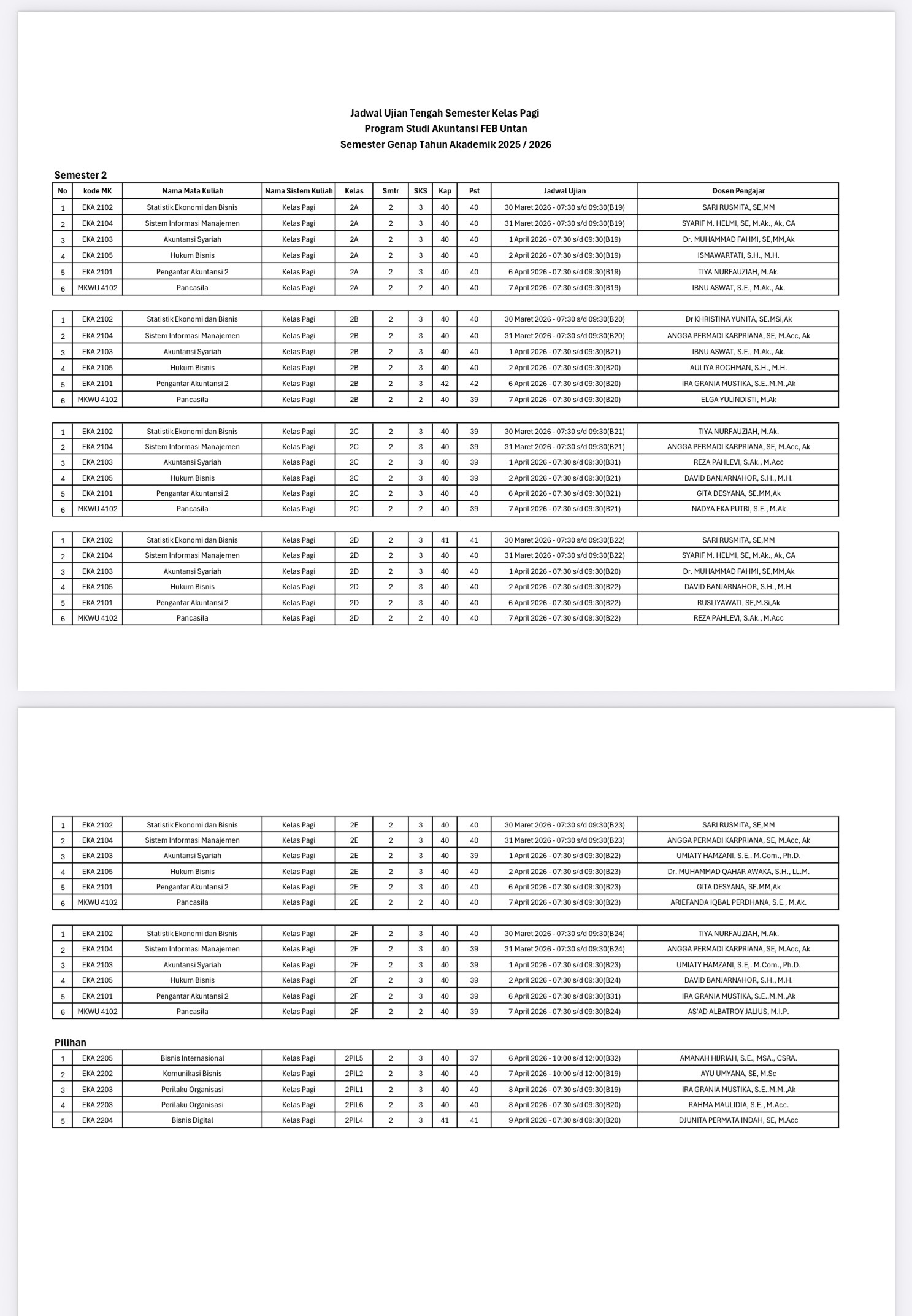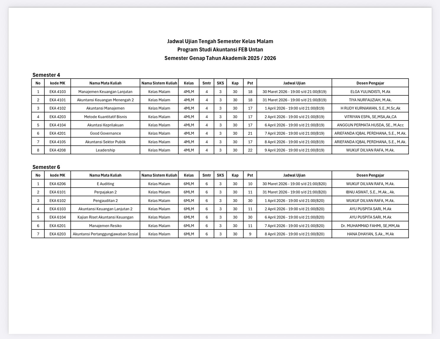 Jadwal UTS Semester Genap 2025-2026